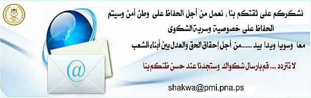 لطفا قم بتعبأة النموذج التالي لارسال شكواك مباشرة الى دائرة الشكاوي في جهاز الاستخبارات العسكرية الفلسطينية واستكمل جميع المعلومات المطلوبة في الشكوى